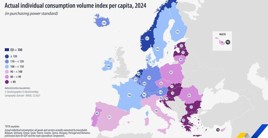 Indicatorul folosit, consumul individual efectiv pe cap de locuitor (AIC), exprimat în standarde de putere de cumpărare (PPS), reflectă cât consumă efectiv oamenii şi include accesul la servicii publice. Spre deosebire de PIB-ul pe cap de locuitor, AIC oferă o imagine mai realistă a nivelului de trai.