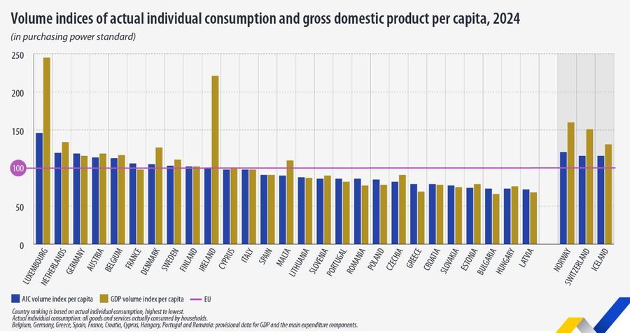 Experţii subliniază că AIC este mai relevant pentru a compara nivelul de trai, deoarece arată consumul efectiv al gospodăriilor, nu doar producţia economică.