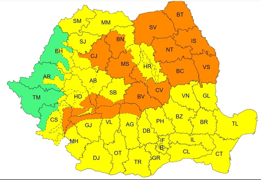 O avertizare cod portocaliu vizează intervalul 28 decembrie, ora 02 – 29 decembrie, ora 10.