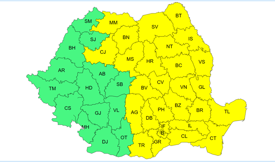 În cursul zilei de vineri, este cod galben de ger în nordul şi estul Moldovei, unde vor fi temperaturi deosebit de scăzute, local gerul va persista, iar maximele vor fi de -12...-10 grade.